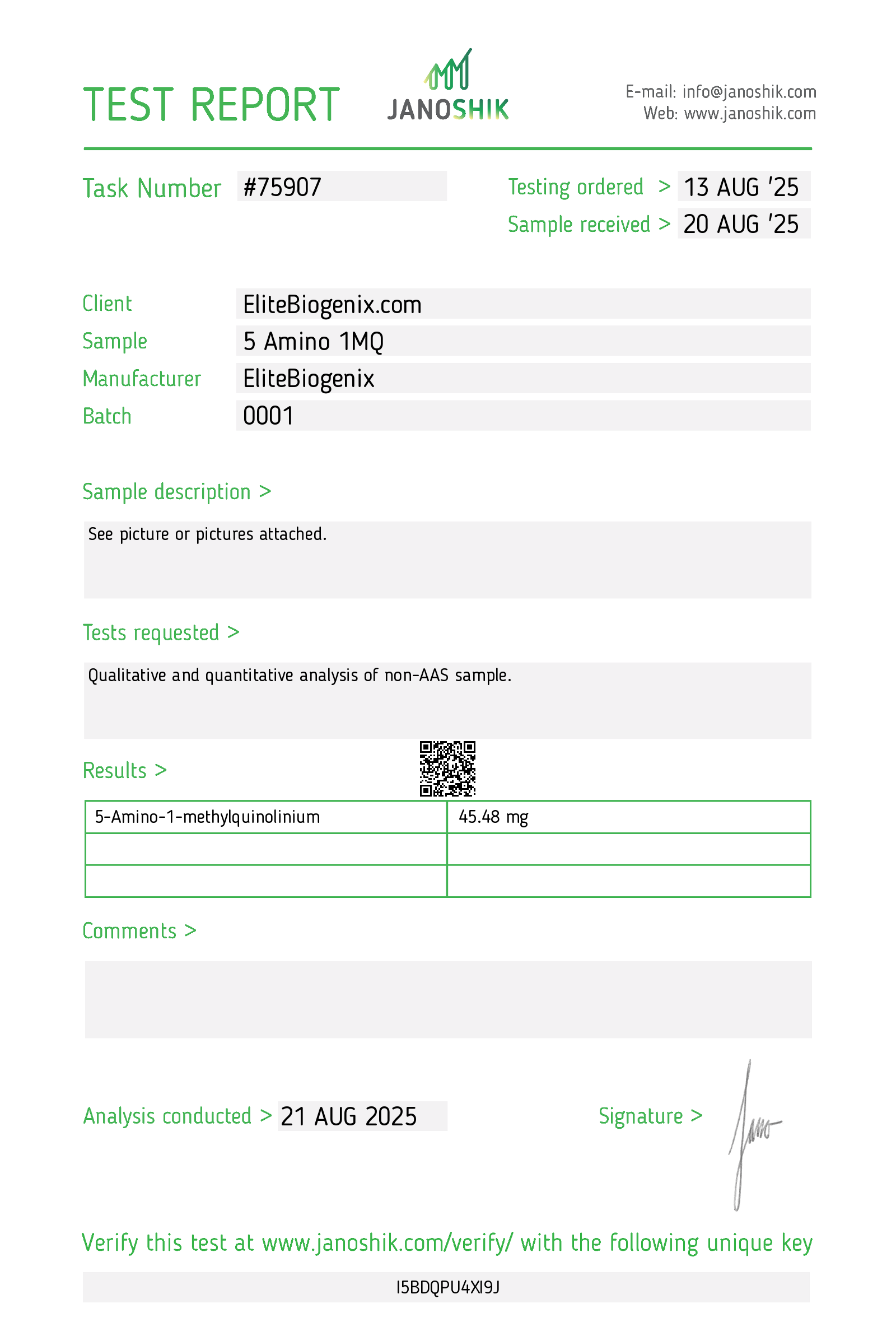 HPLC Test Results: https://janoshik.com/tests/75907-5_Amino_1MQ_I5BDQPU4XI9J