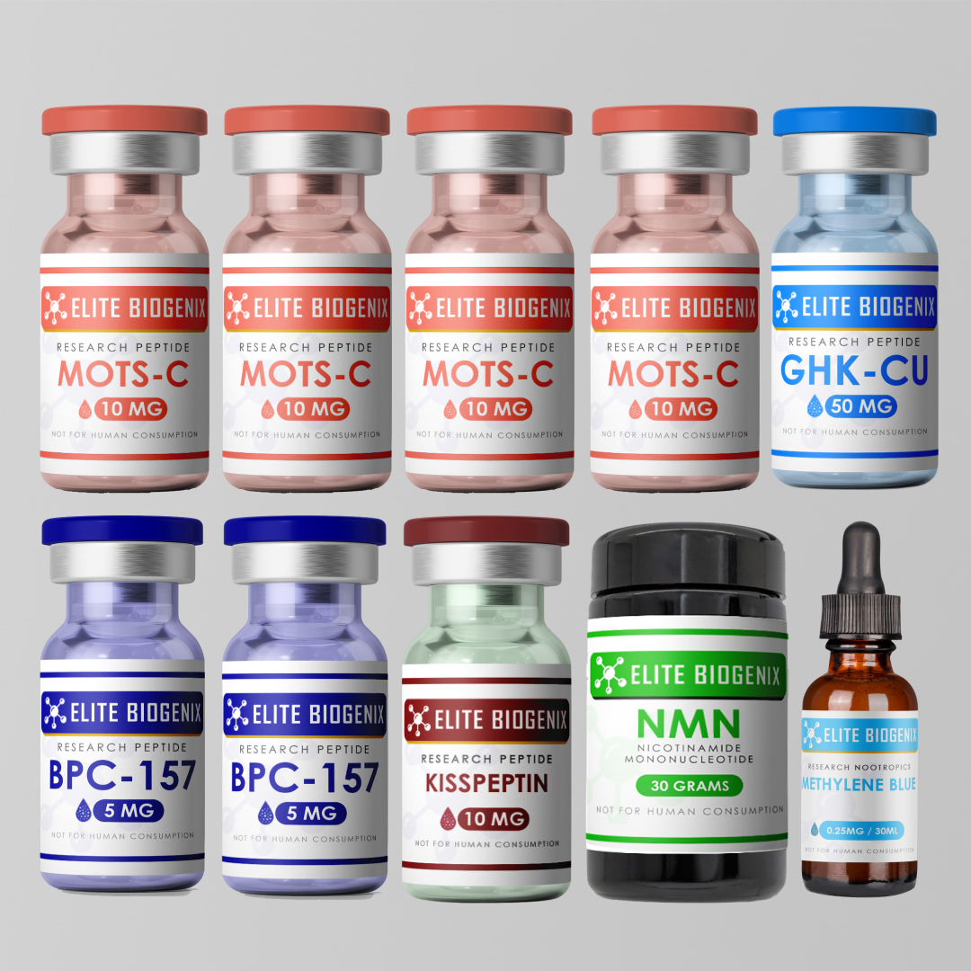 Alcohol Research Stack: MOTS-C, GHK-Cu, BPC-157, Kisspeptin, Methylene Blue & NMN – EliteBiogenix.is