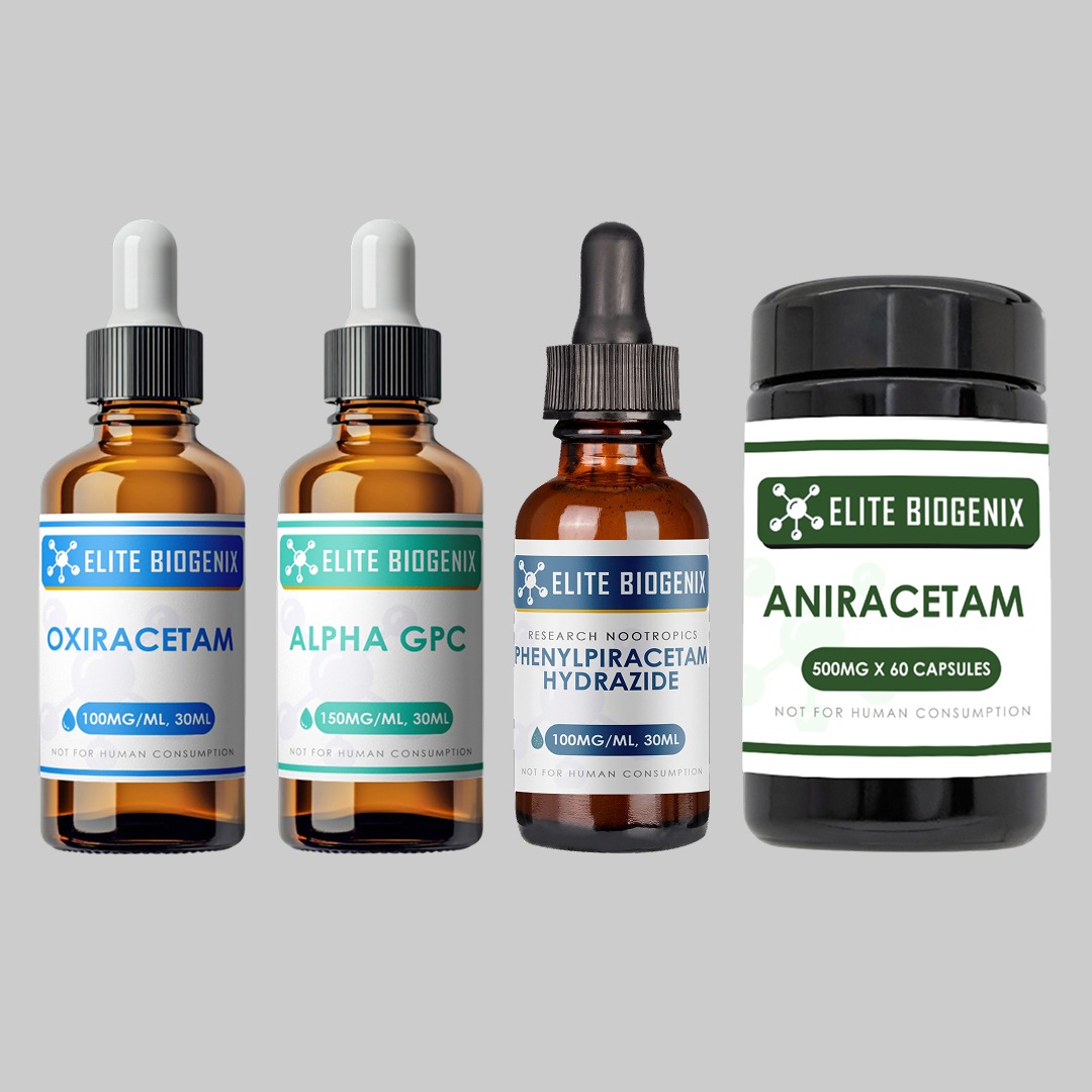 In the demanding field of cognitive neuroscience, researchers are continually seeking advanced tools to study the complex mechanisms of memory, learning, focus, and neuronal resilience. EliteBiogenix is proud to present a pinnacle of formulation science: the PAO Research Stack. This meticulously curated stack combines four powerful nootropic compounds—Phenylpiracetam Hydrazide, Aniracetam, Oxiracetam, and Alpha GPC—into a single, comprehensive research solution.